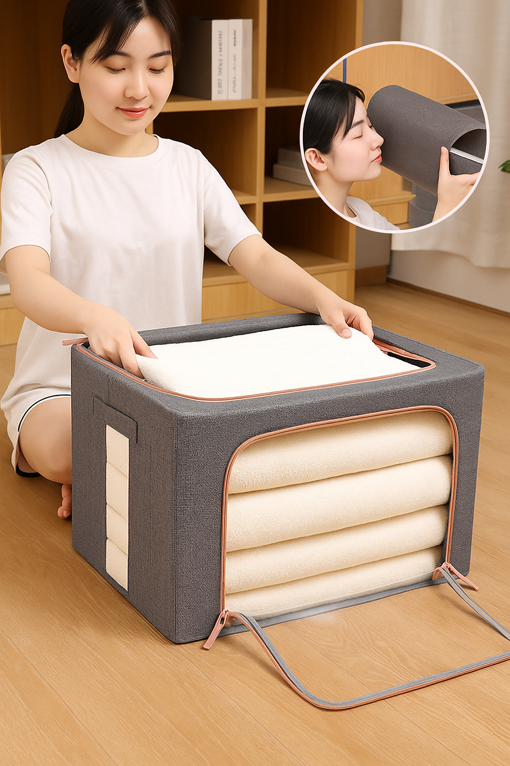 Mantenha roupas, toalhas e cobertores sempre organizados com a Caixa Organizadora de Tecido, perfeita para otimizar o espaço do seu guarda-roupa e facilitar a organização da casa ou mudanças.