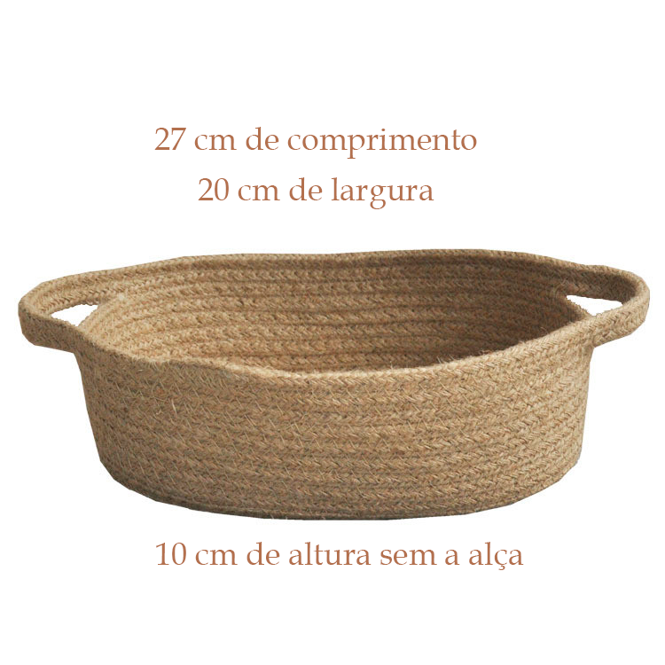 ✔️ Cesto oval com alças: comprimento 27 cm × largura 20 cm × altura 10 cm