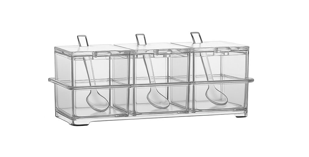 Transparente, elegante e compacto, o conjunto se adapta perfeitamente à bancada ou despensa, deixando o ambiente visualmente limpo e bem organizado.