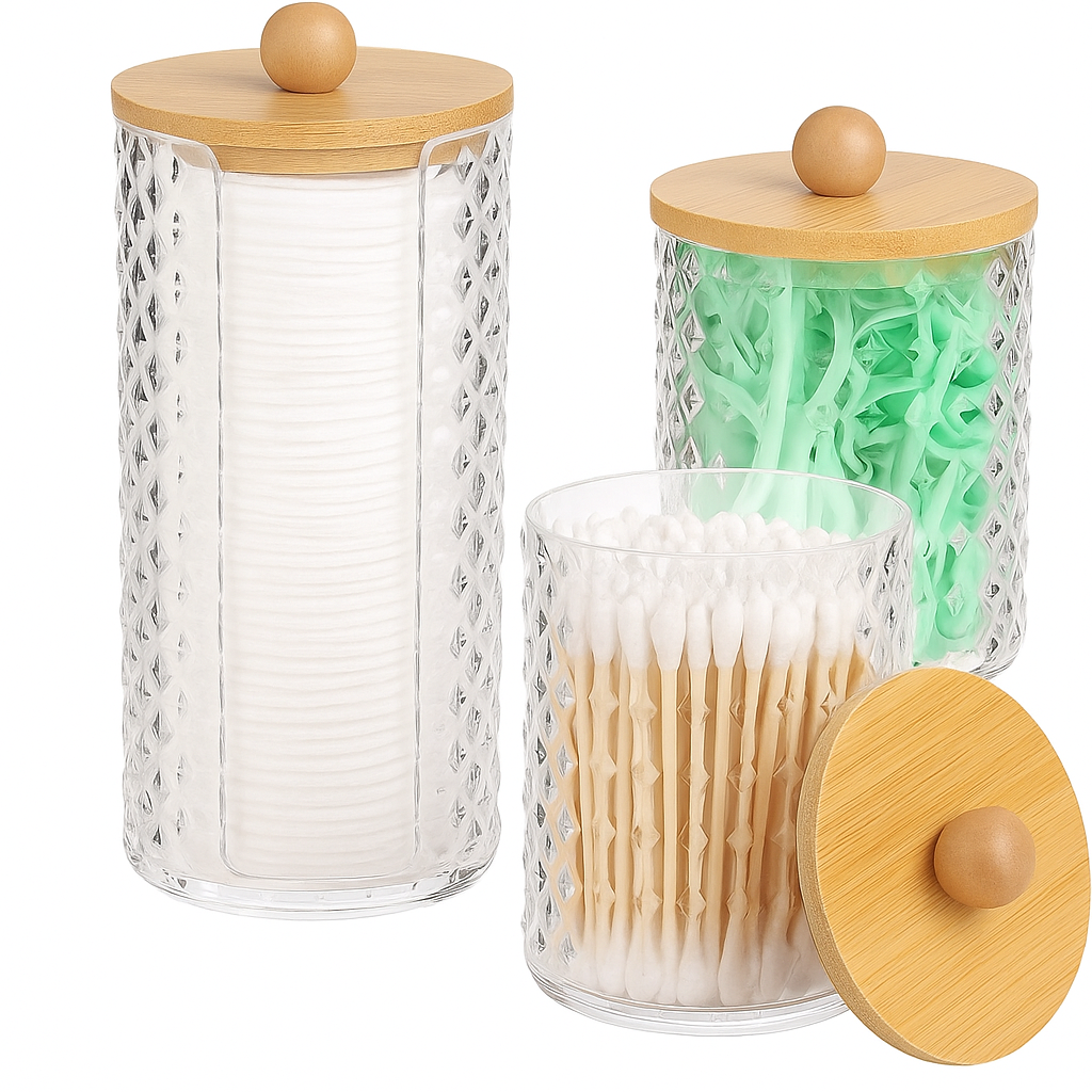 Ideal para guardar cotonetes, algodão, discos faciais, hastes flexíveis ou pequenos acessórios de higiene. Mantém tudo ao seu alcance com muito mais organização.