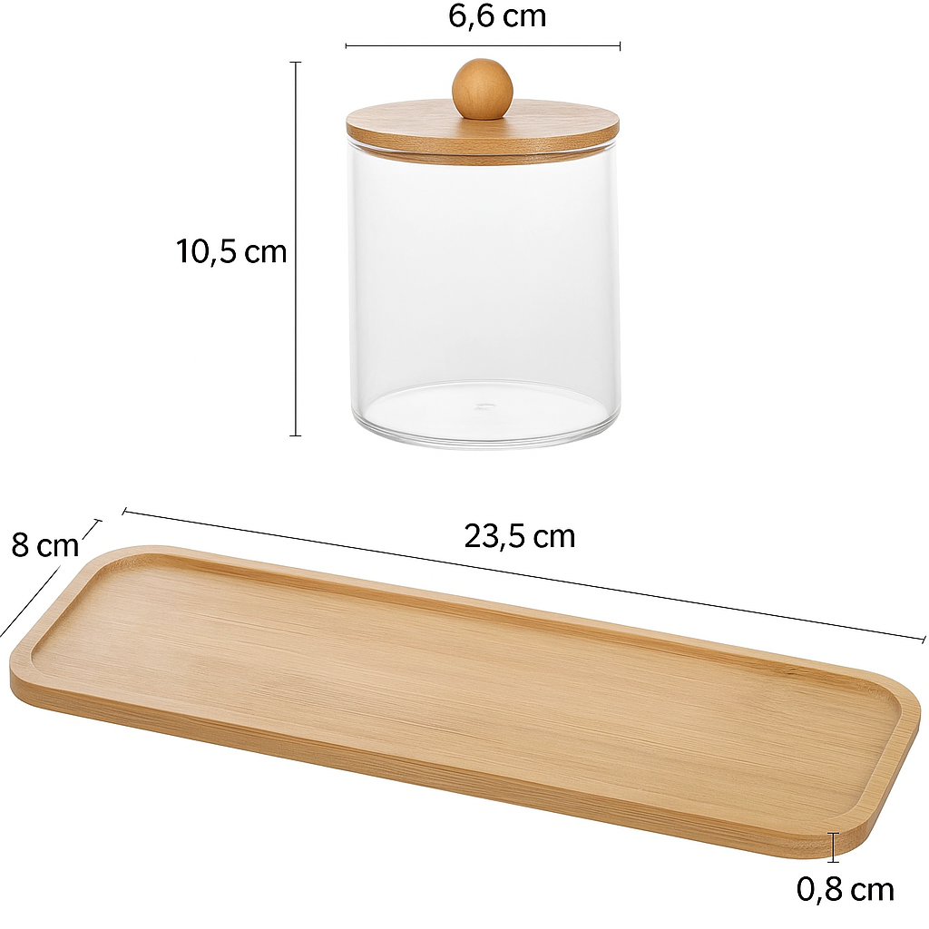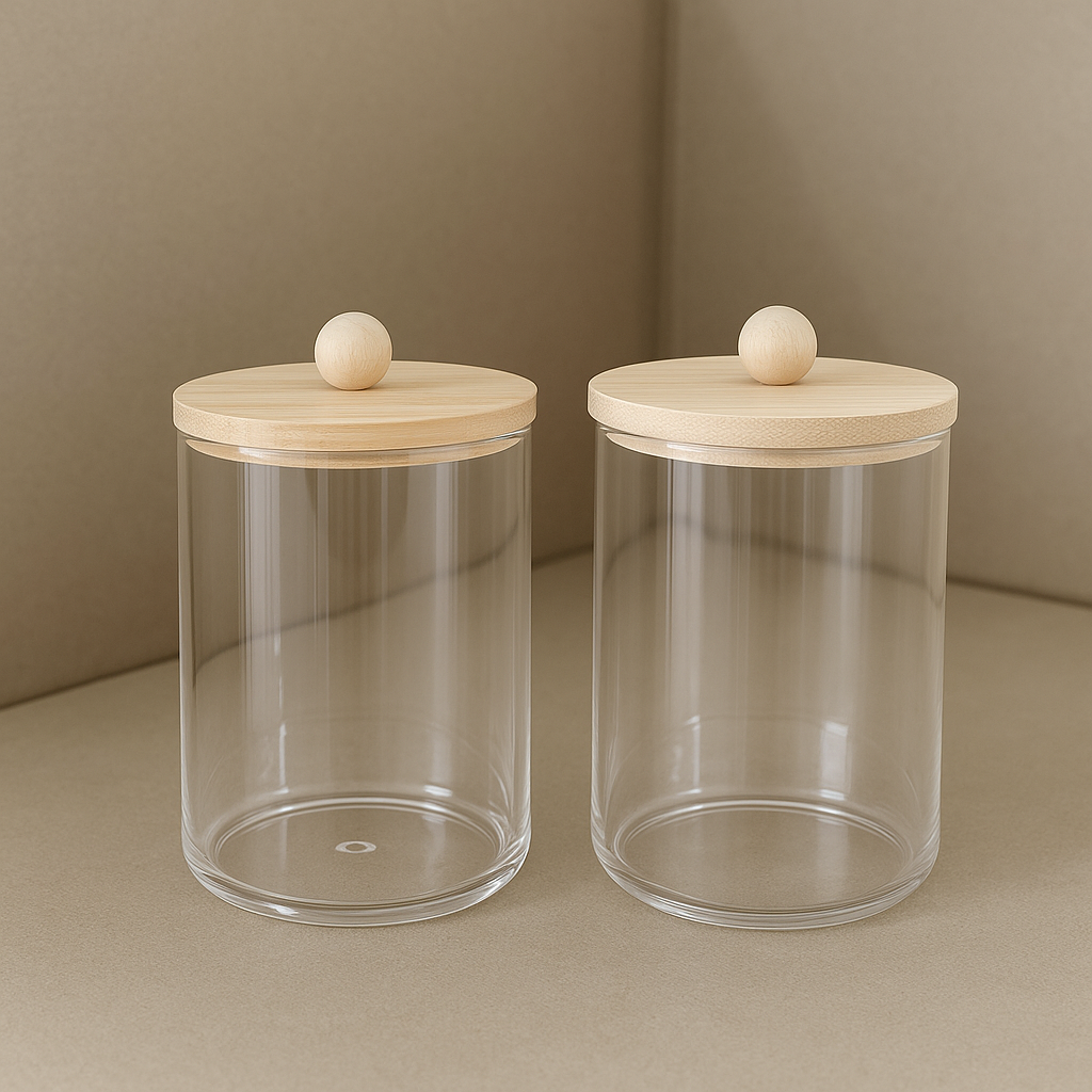 Produzido em acrílico transparente de alta durabilidade, permite visualizar facilmente os itens armazenados. As tampas em madeira ou cromadas (dependendo do modelo) adicionam um toque elegante e natural ao ambiente.