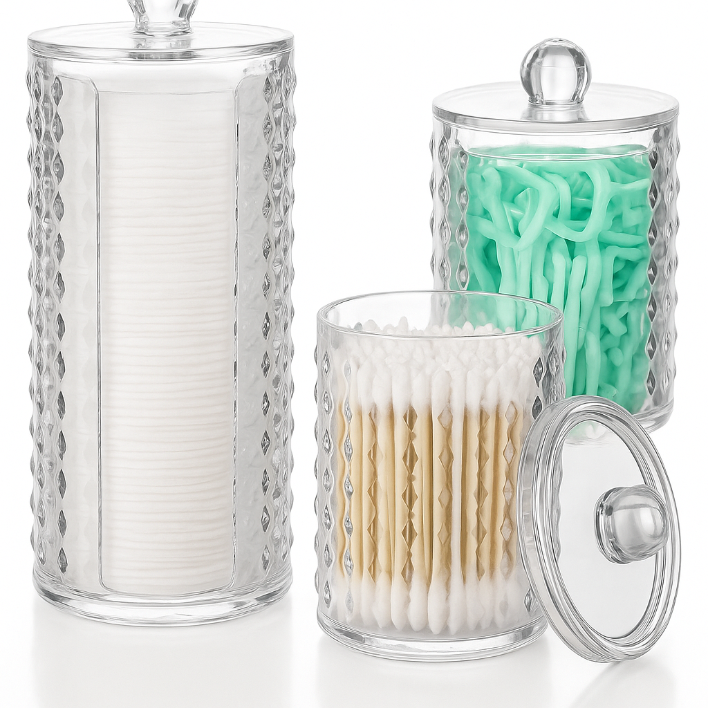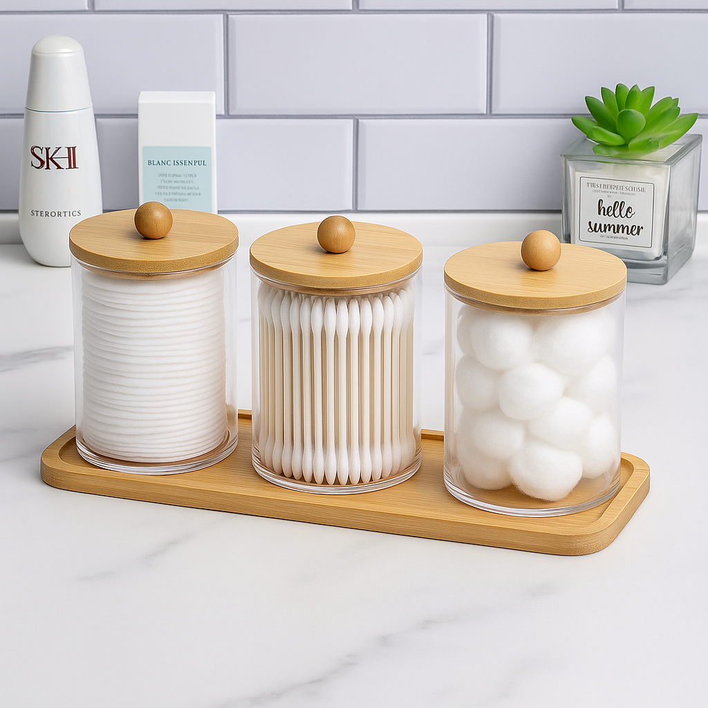 Praticidade e estilo se encontram no Kit de Organizadores em Acrílico, o conjunto perfeito para manter cotonetes, algodão e discos de limpeza sempre organizados. Com design sofisticado e funcional, ele transforma seu banheiro ou penteadeira em um espaço muito mais charmoso e moderno.