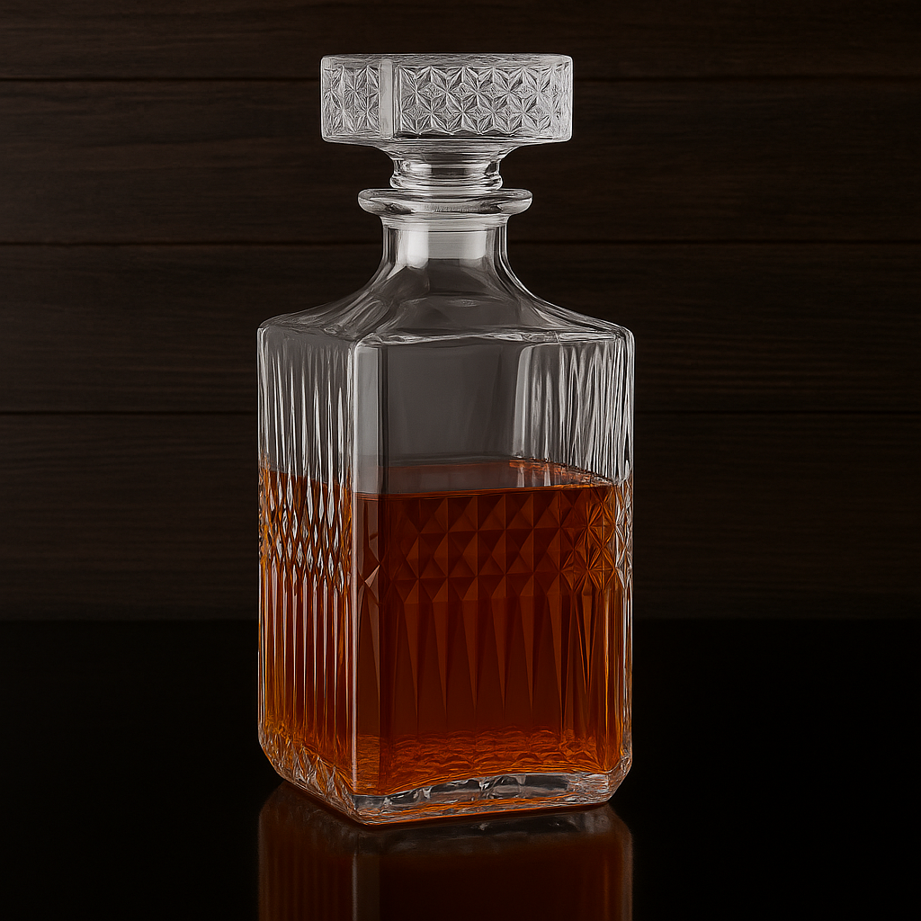 Transforme seus momentos especiais em experiências inesquecíveis com a Garrafa de Uísque. Com design refinado e cortes detalhados que refletem a luz de forma única, ele é perfeito para servir vinhos, uísques e outras bebidas com charme e sofisticação. Um item indispensável para amantes de elegância na mesa.