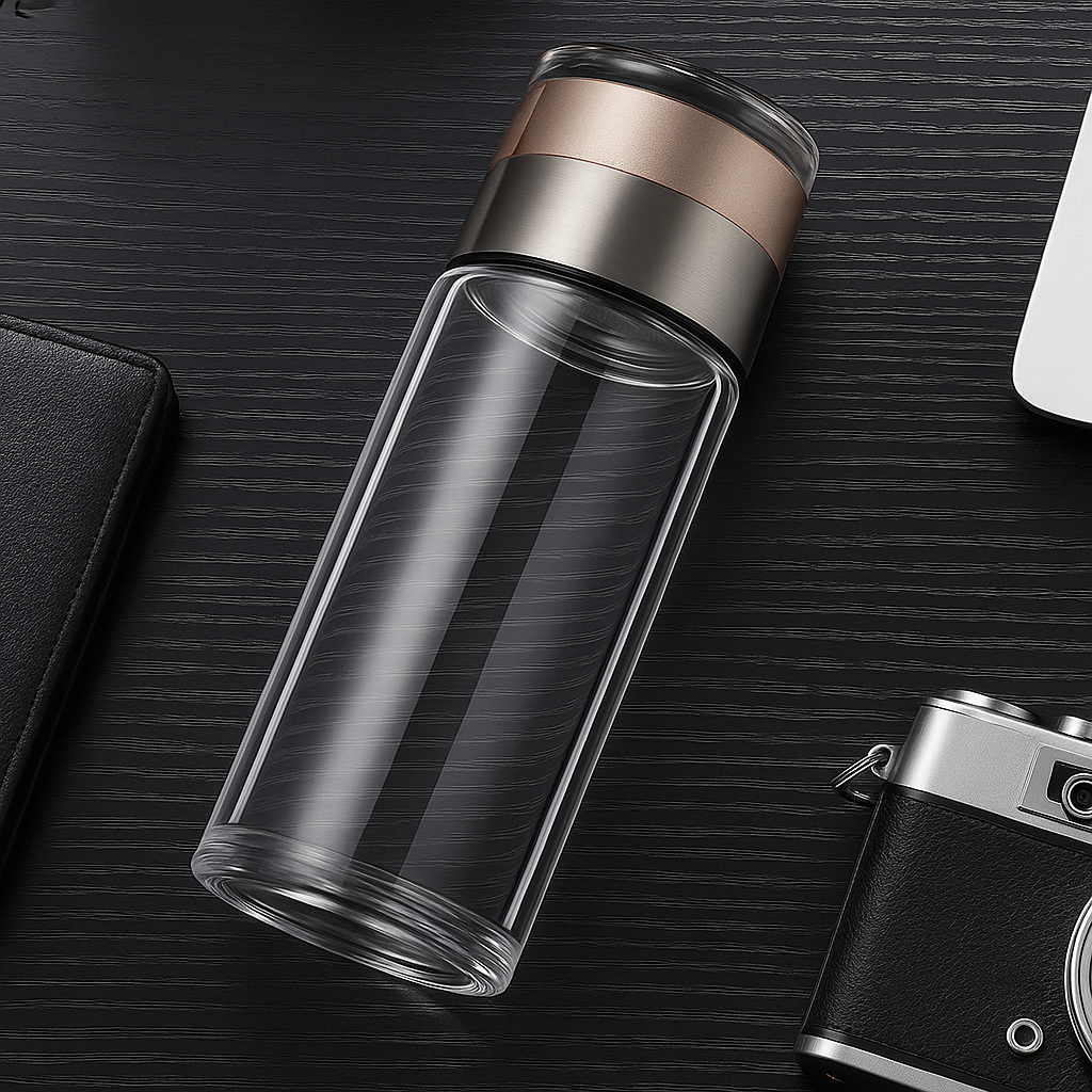 👉 Mais praticidade, estilo e sabor no seu dia com a Garrafa de Vidro Duplo com Infusor! ☕🌿