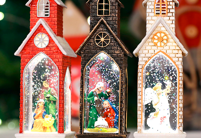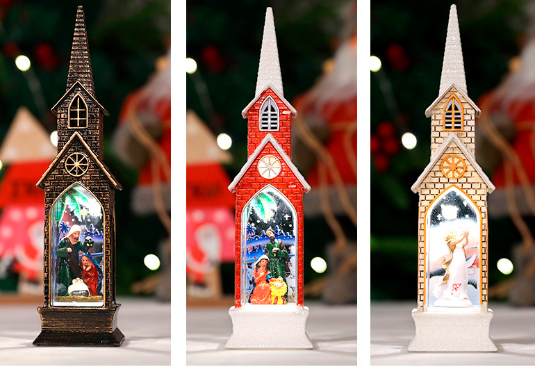 Seu design em formato de igreja, com neve em movimento e iluminação LED, cria uma atmosfera natalina única, cheia de encanto e tradição.