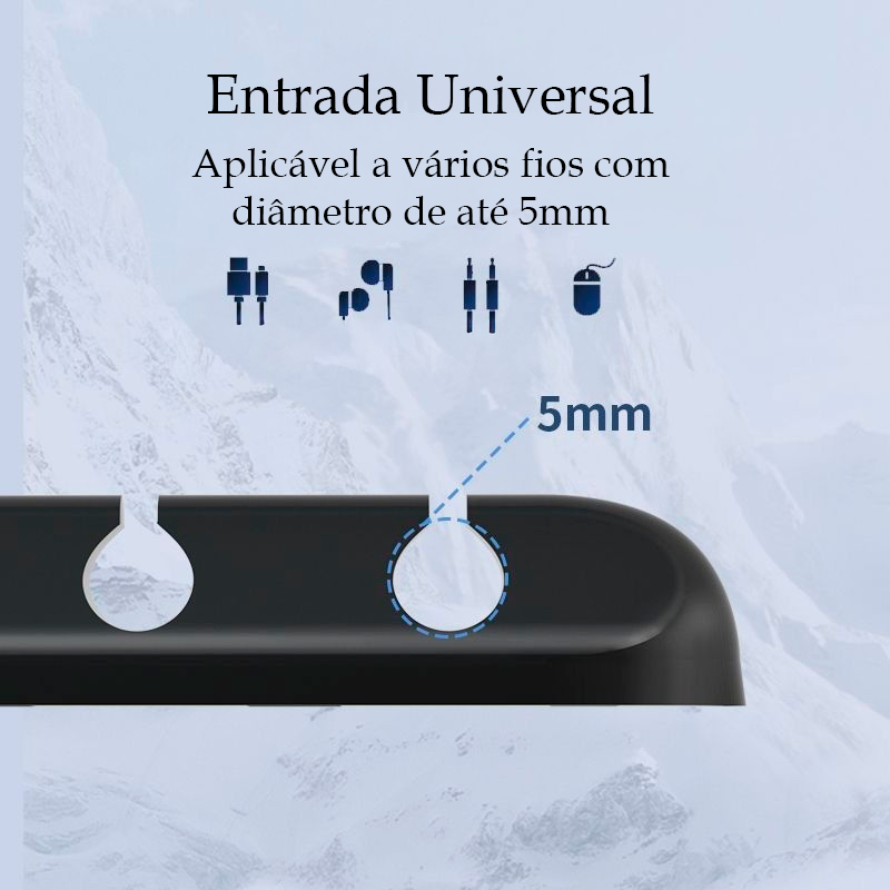 Projetado para cabos de até 5 mm de espessura, acomoda com perfeição cabos de dados, áudio, fones, rede ou energia, mantendo tudo no lugar com firmeza.