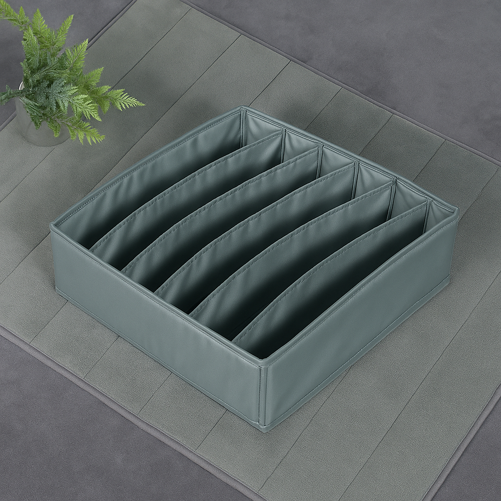 Mantenha seus sutiãs, calcinhas e peças íntimas sempre bem organizadas com o Organizador Dobrável de 6 Divisórias, projetado para otimizar espaço e trazer praticidade para o dia a dia.