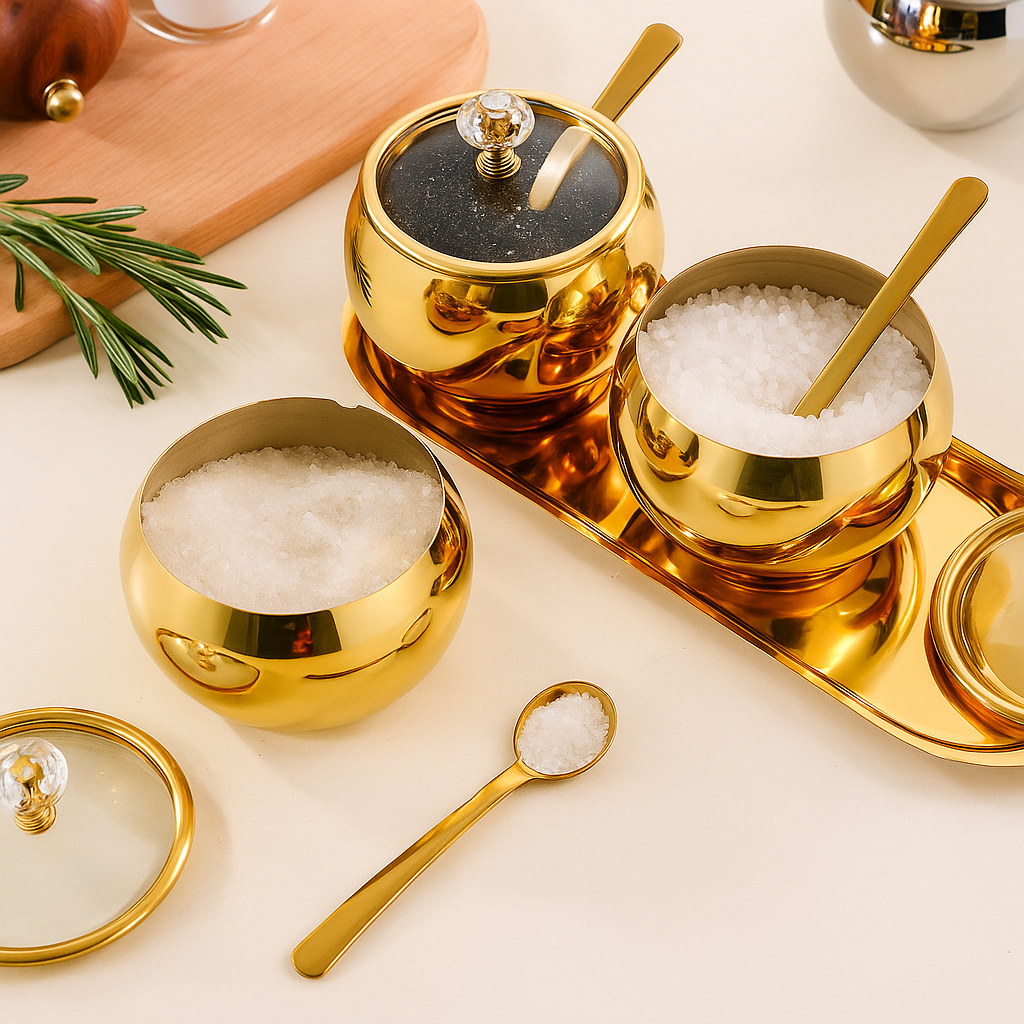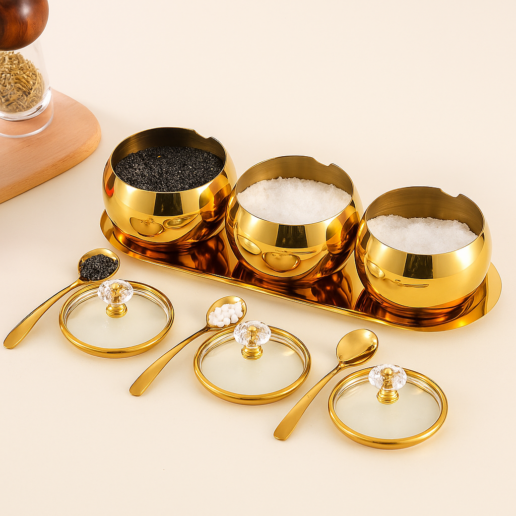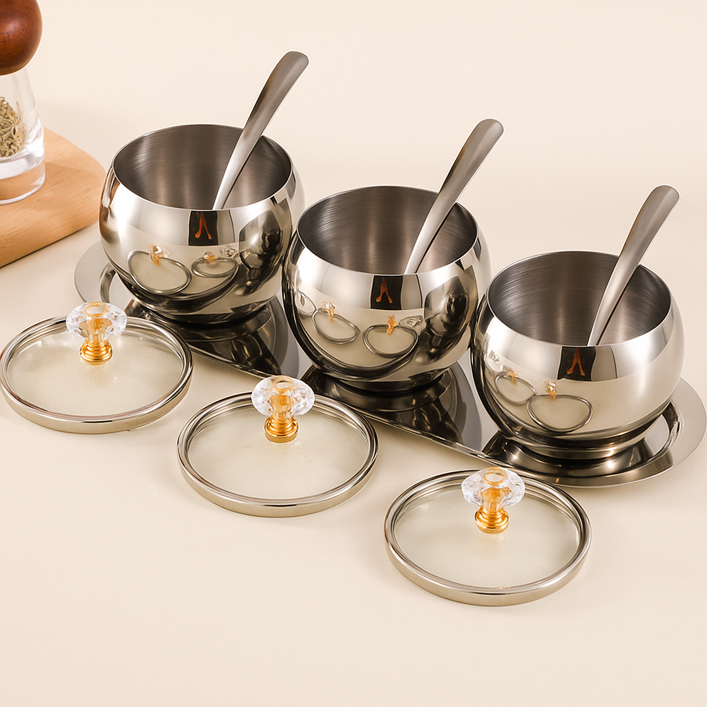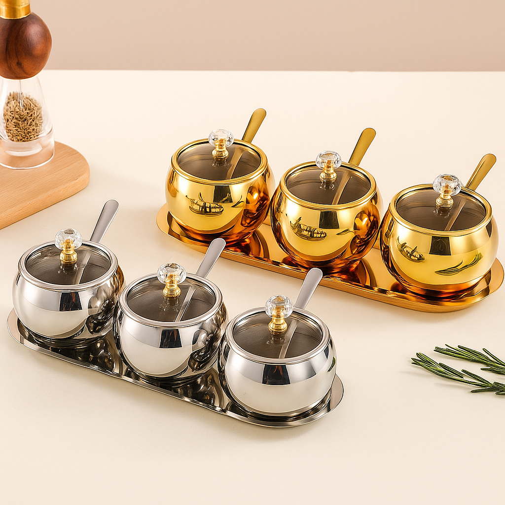 Transforme sua bancada em um espaço organizado e sofisticado com o Porta-Temperos em Aço Inox 304. Perfeito para armazenar sal, açúcar, pimenta e outros temperos com muito estilo.