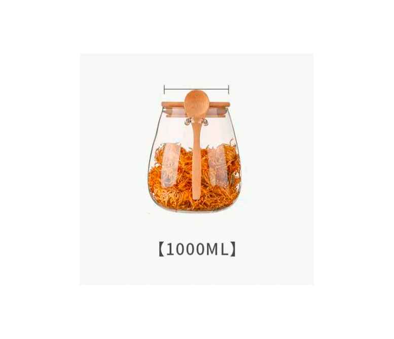 Feito em vidro de alta qualidade, resistente e durável, com tampa de bambu e colher de madeira integrada — ideal para quem valoriza praticidade e estética natural.
