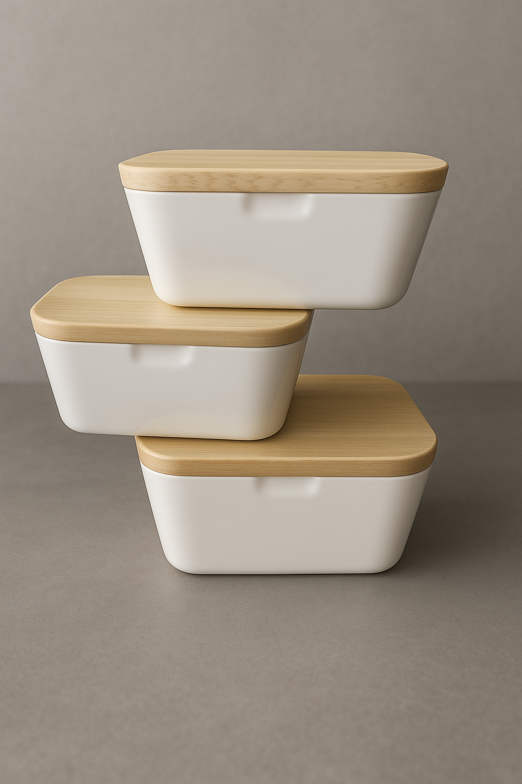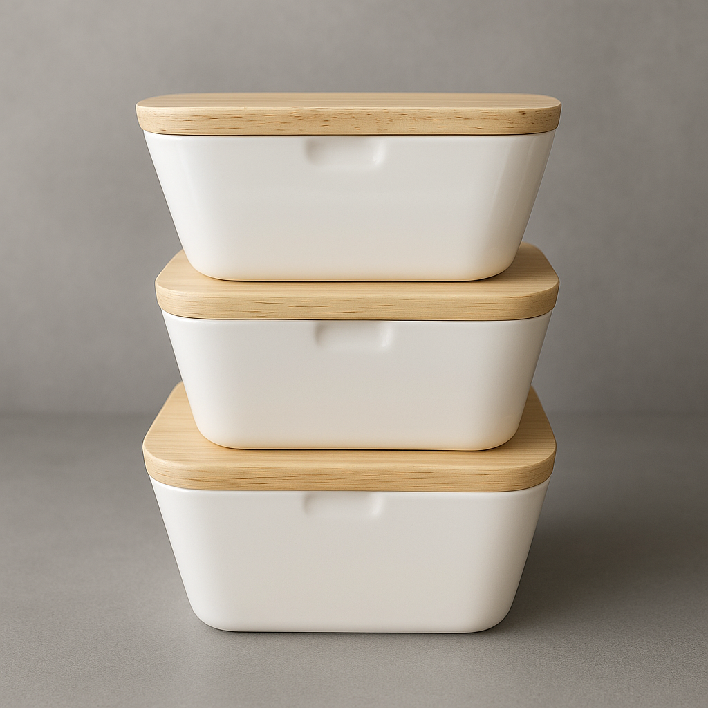 Com design minimalista e tampa de madeira natural, este recipiente é perfeito para trazer praticidade e sofisticação à sua cozinha.