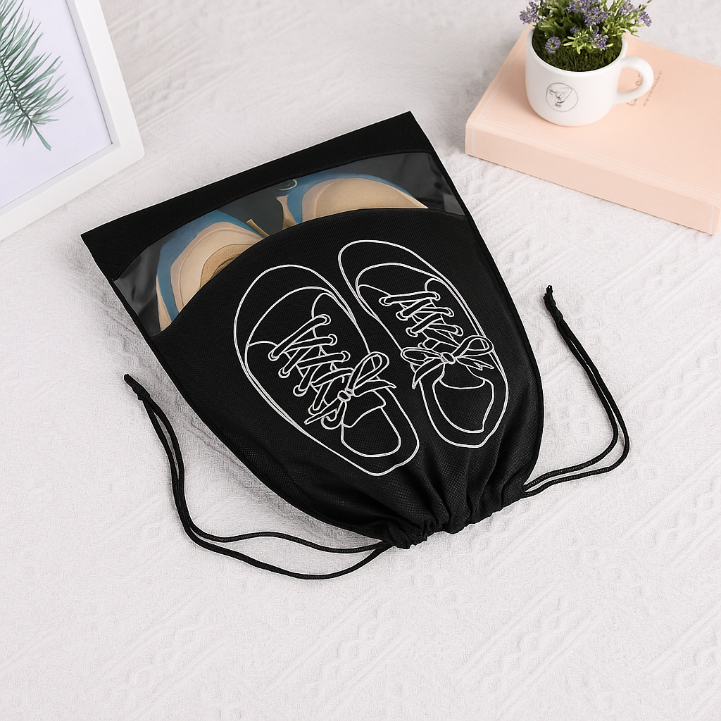 Mantenha seus calçados protegidos e organizados com o Saco Organizador de Sapatos em Tecido. Ideal para viagens, academia ou uso diário, ele evita sujeira, odores e mantém seus itens bem armazenados dentro da mala.