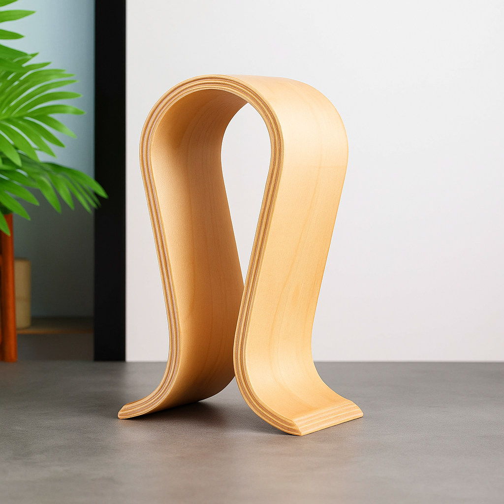Feito de madeira curvada de alta qualidade, ele organiza seus fones com estilo, mantendo sua mesa limpa e harmoniosa.