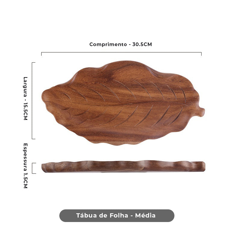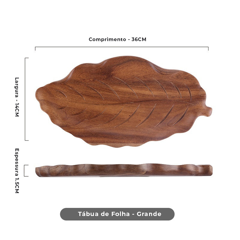 👉 Deixe sua mesa mais charmosa e sofisticada com a Travessa de Madeira em Formato de Folha! 🍃✨