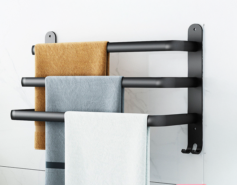Transforme o visual do seu banheiro com o Suporte de Toalhas de Metal Preto. Com design moderno, alta resistência e múltiplas opções de camadas, ele é ideal para manter suas toalhas sempre organizadas e ao alcance.